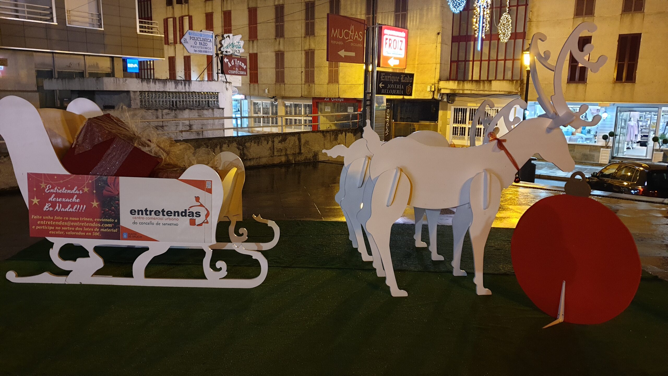 Sorteo de lotes de material escolar valorados en 50€ cada un para os que nos envíen unha foto no noso trineo de Nadal, situado na praza do Pazo.